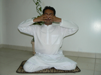 Procedure : Close ears with thumb, index finger on the forehead, and the other three on the base of nose touching eyes. Now inhales and exhales through the nose while humming like a bee